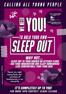 On Friday 1st May, we are inviting people to get an idea of what it’s like to be homeless by sleeping on their kitchen floor, in a shed, in the garden or even under the bed!