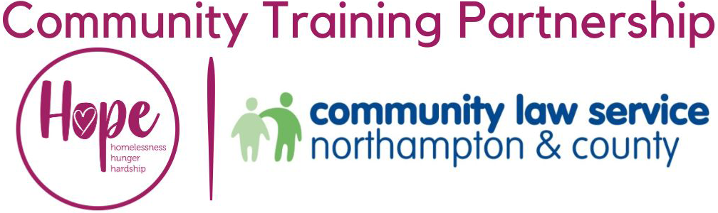 The Community Training Partnership provides bitesize training to frontline workers and volunteers. The Partnership is funded by West Northamptonshire Council and led by Northampton Hope Centre and Community Law.
