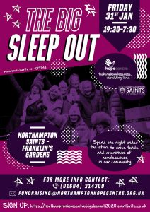 The Hope Big Sleepout returns, Friday, 31st January 2020, at the Saints Ground, Northampton.