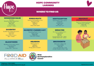West Northants Council have launched an initiative to support Hope in our efforts to increase the supply of food to the homeless community and those facing hardship in the district. Households will now be able to drop in-date and non-perishable food at new, accessible donation points found at local libraries across West Northamptonshire. The goods will go directly to support those facing homelessness and hardship in the community.